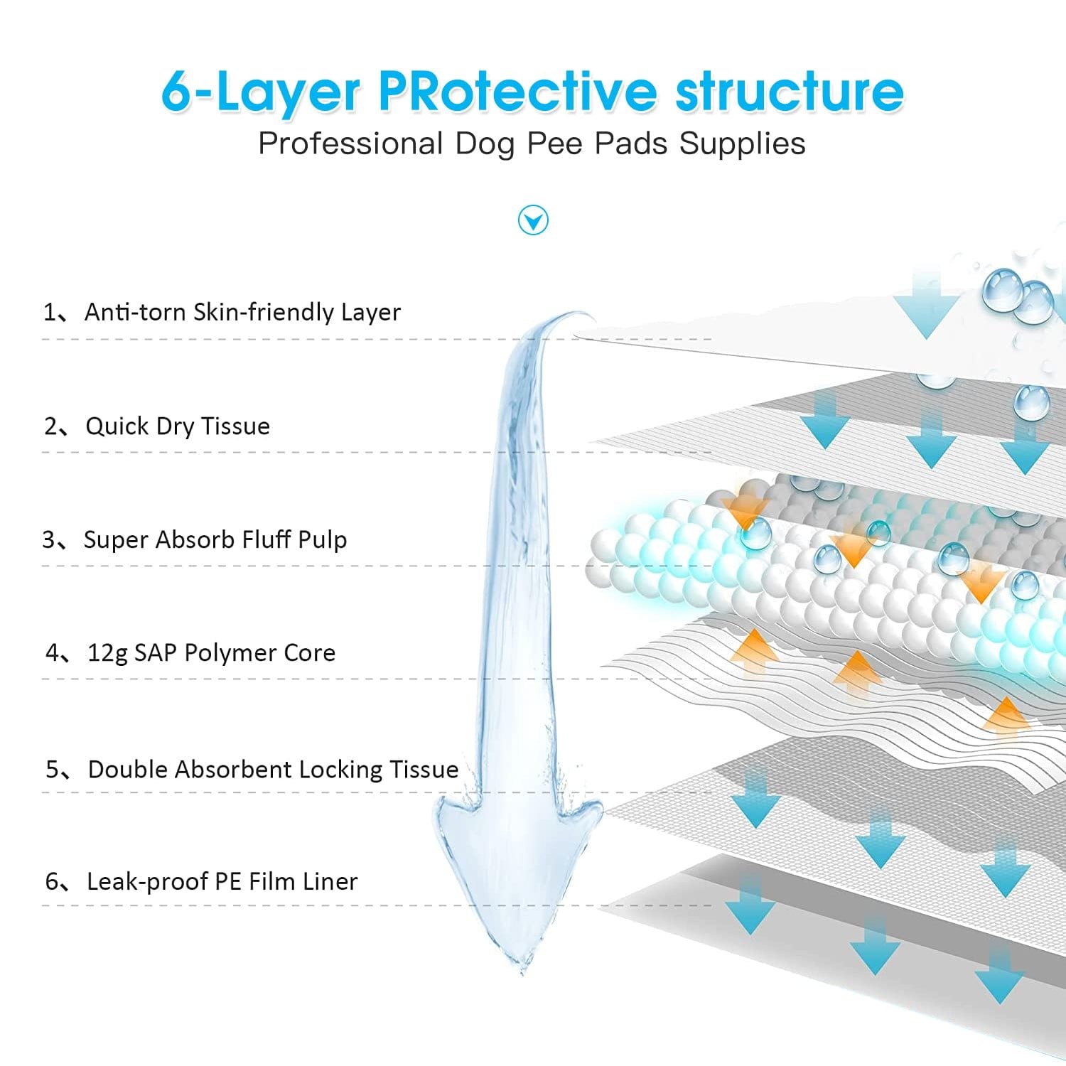 - Super Absorbent and Thicker – Thickened disposable pads for dogs and 6-layer protection design makes our Clevinger dog pee pee pads more absorbent than the most puppy potty pads on the market.