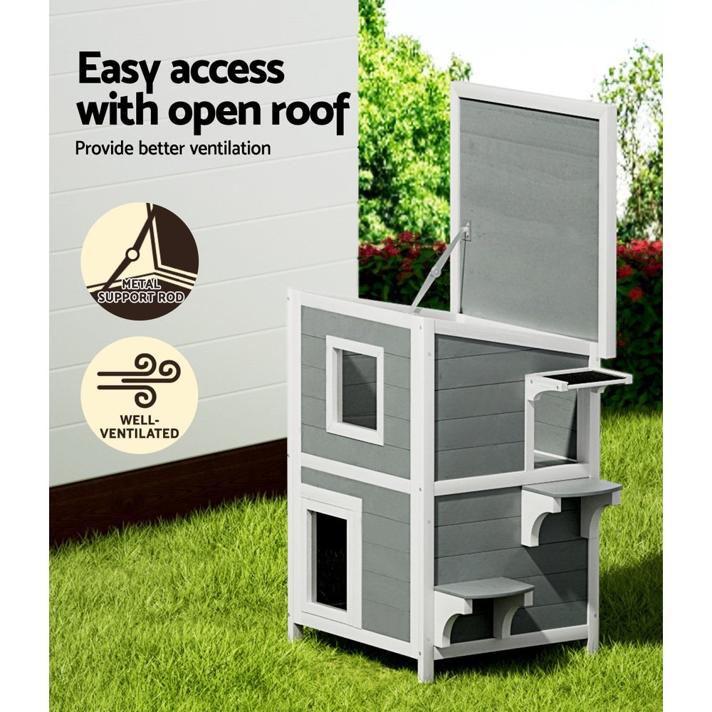 i.Pet Outdoor Cat House Shelter 56cm x 52cm x 82cm Rabbit Hutch Wooden Condo Small Outdoor Cat House
