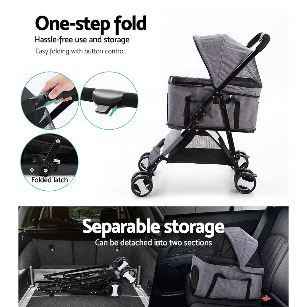 i.Pet Pet Stroller Dog Pram Cat Carrier Travel Large Pushchair Foldable 4 Wheels Grey